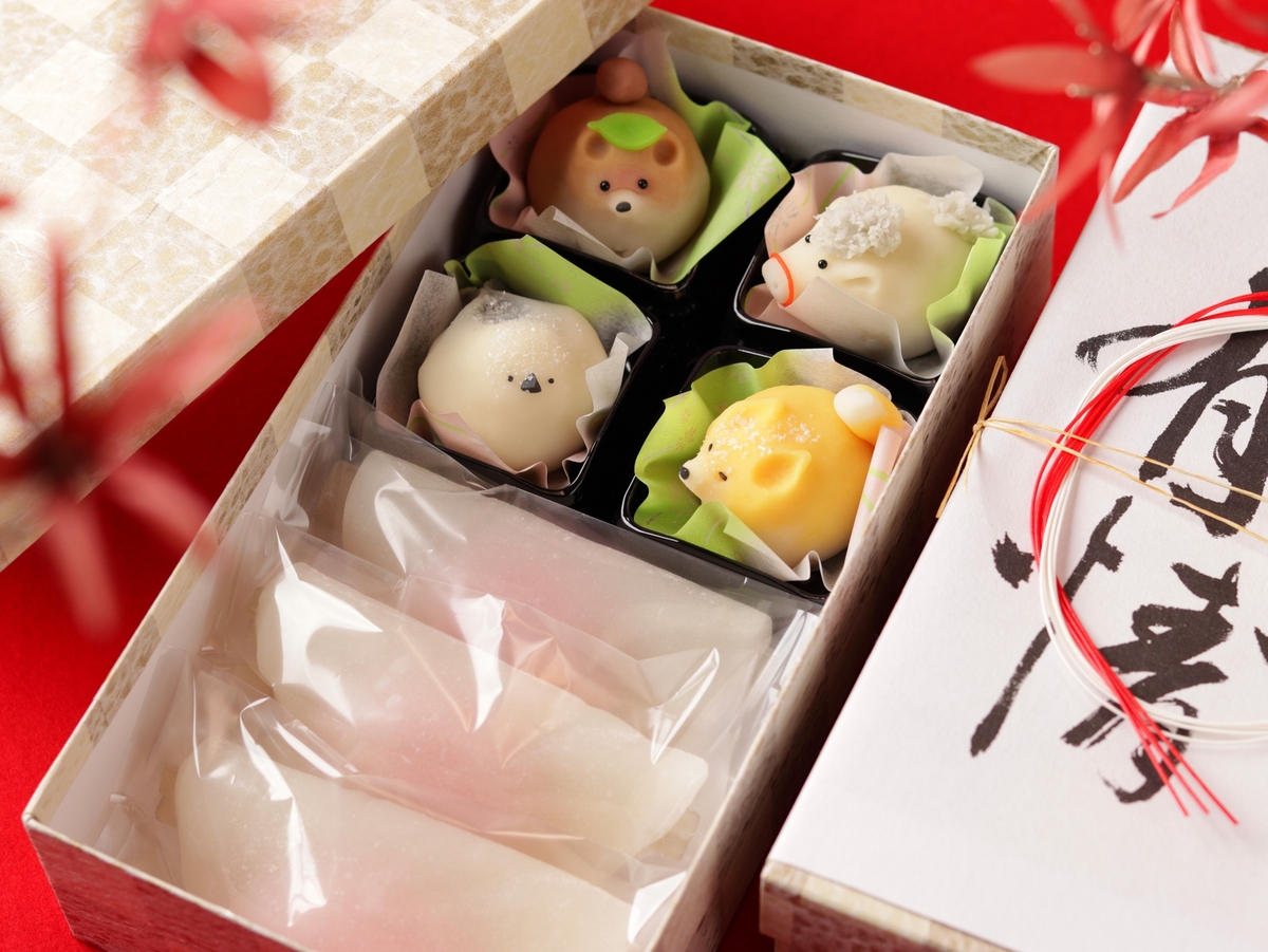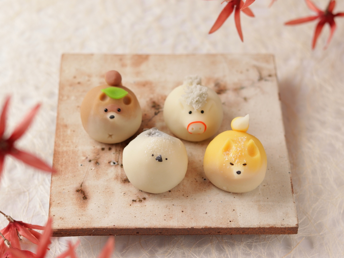 人気の冬の生き物たちと花びら餅の詰め合わせになります。
